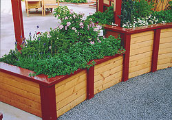 | Мини-огород можно разместить около летней кухни или дома, чтобы стена защищала овощи от холодных ветров и непогоды, главное — место должно быть достаточно освещенным. Такой «пристеночный» огород лучше делать приподнятым, размещая грядки в несколько ярусов для экономии площади. Они могут быть различной формы (прямоугольной, круглой, овальной, треугольной) из любого материала (доски, бревна, декоративный камень, кирпич, металл, пластик, бетонные плиты). Но грядки круглой либо овальной формы лучше сделать из коротеньких бревнышек.