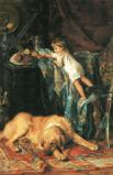 Картина поражает истинно „натюрмортным” нагромождением богатых тканей, экзотических фруктов, антикварных редкостей. Маленький золотоволосый кукольно-красивый мальчик и огромная породистая собака кажутся простыми экспонатами этой буржуазной выставки предметов роскоши.