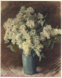 первому натюрморту по своему мотиву. Они выдержаны в теплой зеленовато-коричневой красочной гамме, в которой так органично звучат и поливная глина простой молочной кринки и желтые головки цветов. Сходный характер имеет и „Белая сирень” из Омского музея изобразительных искусств.