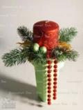 Создать праздничную атмосферу в доме поможет не только лесная красавица-елка, но и небольшой изящный новогодний букет. Основу такого букета составляют пушистые веточки ели, сосны, туи, кипариса. В такой букет вставляют различные дополнения из свечей, лент, шишек, елочных украшений – словом все то, что является неотъемлемой принадлежностью Нового года.