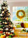 нравится больше всего, или вспомнить самую лучшую сказку из своего собственного детства. Конечно же, Вы захотите украсить свою елку лампочками и фонариками. Если Вы выбрали для всего дома и сада белое освещение, используйте его и для елки, добавив при этом яркие ленточки, например, золотые, и украсив все деревце от основания до макушки. На конце некоторых ветвей можно разместить такие же золотые бантики, повесить свои любимые елочные игрушки и, наконец, добавить несколько акцентов – это могут быть, например, размещенные на елке бордовые украшения. На верхушку дерева поместите белую звезду, а основание можно декорировать белым атласом.